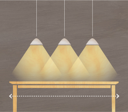 ペンダントライトは、吊るす位置によって光の広がり方が変わります。高めに吊るすことで広範囲に広がりますが、手元は暗くなります。逆に低めに吊すことで照らせる範囲は狭くなりますが、手元は明るく照らせます。