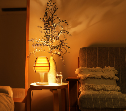 部屋を暗くしながら手元に補助灯を置くことで、落ち着いた雰囲気を楽しめます。