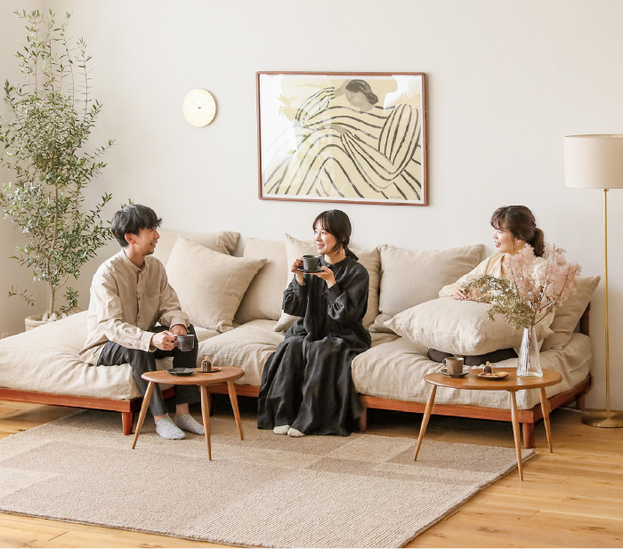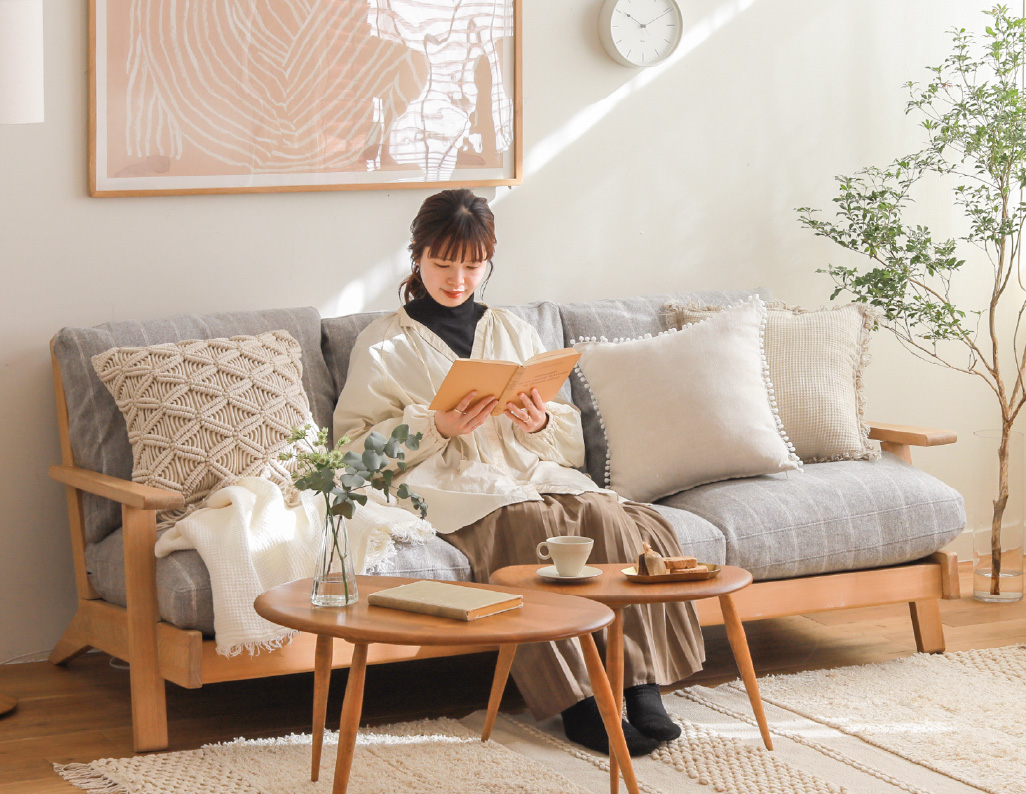 座面幅120cm以上のソファーは、1人あたりのペースが広く使えるので、パートナーや友人とリラックスして会話を楽しむことができます。