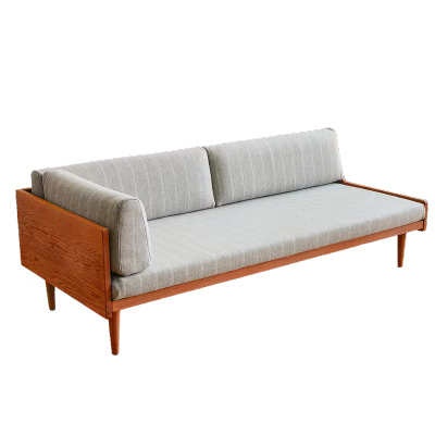奥行きの狭いソファーは、浅めに腰掛けるため、背筋を自然に保ちやすく、作業や読書の時間にも向いています。座面が浅い分、立ち上がる動作も軽やか。日々の使い勝手の良さにつながります。