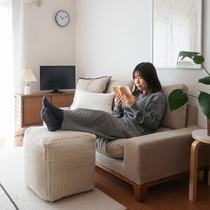 【わたしの愛用品】ソファーで過ごす時間がより快適に。1K8畳の自宅にプフを取り入れた理由
