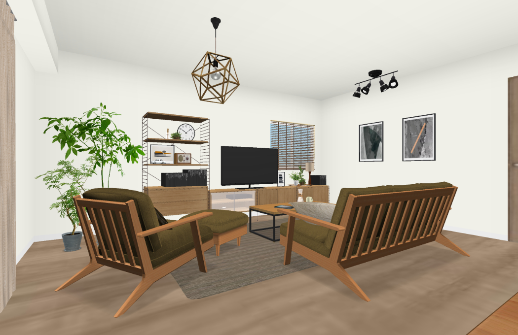 どちらも、大きめのサイズ感ですが、お部屋の広さに見合ったサイズ感のアイテムをバランス良く配置することによって、
