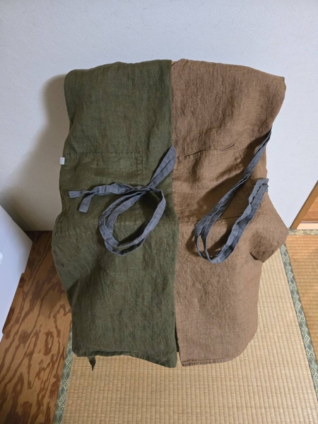こちらのエプロンは素材もよく生地感と色のバランスで