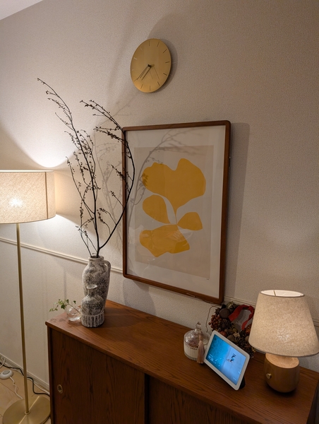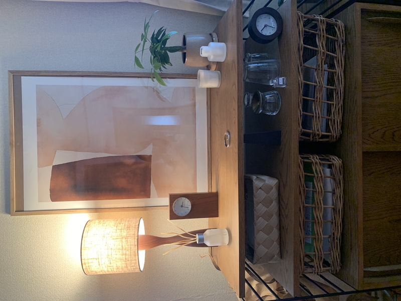 まずはリビング。定番のサイドボード上にアートを取り入れました。