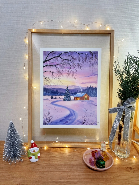 自分で描いた、クリスマスの雰囲気たっぷりの絵を入れたら、12月が一段とロマンチックになりました。