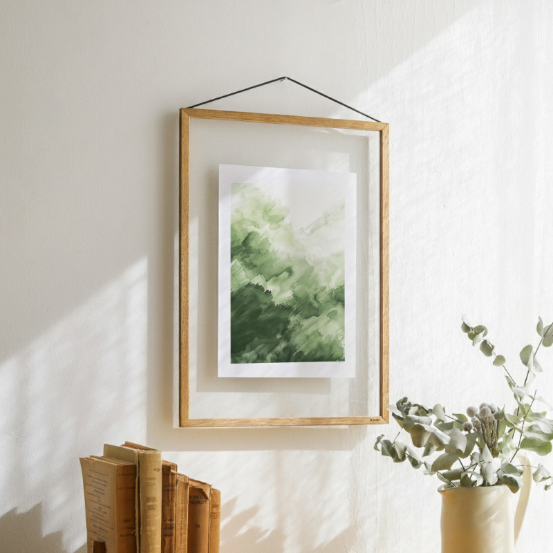 また、フレームよりも小さいサイズのアートを飾れば、「透明な余白」が生まれ、作品が浮かび上がったように見えます。