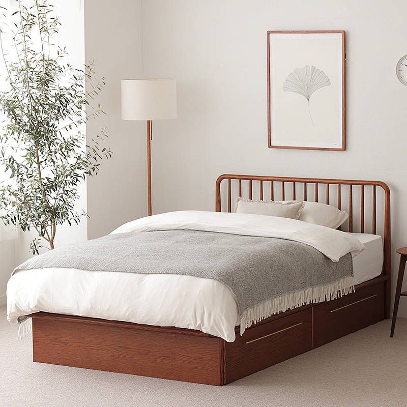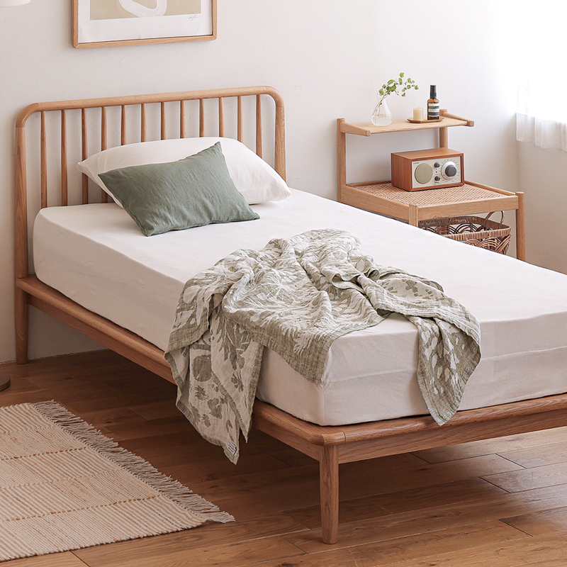 オーク材を贅沢に使い、なめらかなカーブを削り出すことで、北欧黄金期のヴィンテージベッドと変わらぬ美しさを作り上げました。