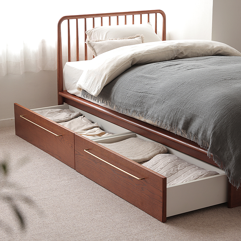引き出しは大容量。シーズンオフの洋服や、夏物・冬物の寝具類、模様替えして使っていないラグマットなど、普段は使わない物たちをたっぷり収納いただけます。