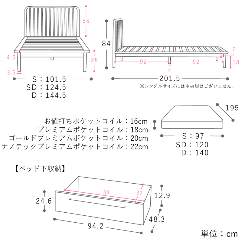 低価格でフレームにセットしていただけるポケットコイルマットレスをご用意いたしました。