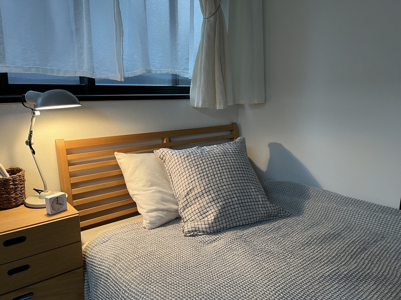 ちなみにヘッドボードに使用している無垢アッシュ材は、ソファなどの家具を製作する際のカット余りとして出る「端材(はざい)」を再利用しています。
