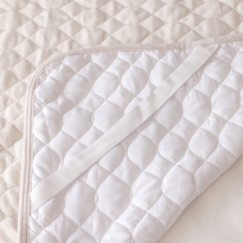 敷きパッドといえば、四隅にゴムがあり、マットレスに取り付けるというイメージが強いのではないでしょうか? パッと取り外し・取り付けができるので、頻繁な洗濯には便利なデザインです。