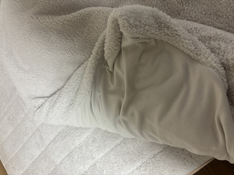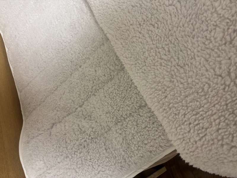 寒い季節におすすめしたい「敷きパッド Muku muku(ムクムク)」。羊の毛を思わせる、ふかふかのボア生地が、身体をふわっと包み込んでくれて、とても気持ち良いんです。