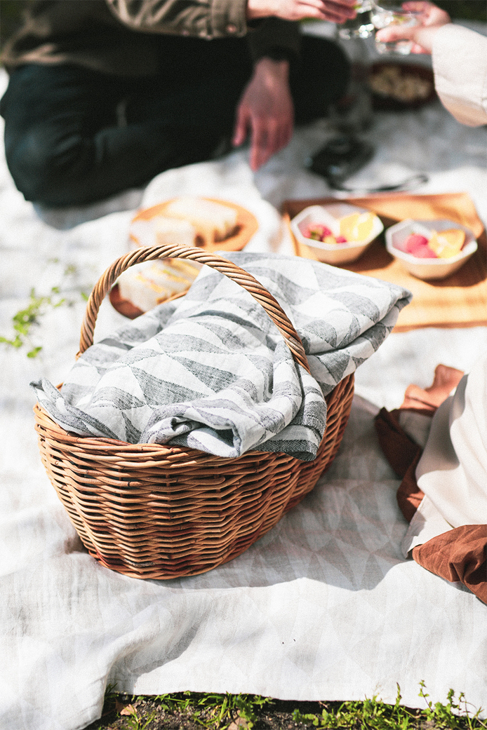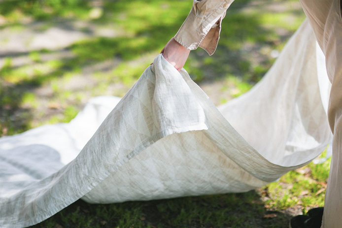 ピクニックといえばビニールシートを思い浮かべてしまう私でしたが、実際に使ってみて、外で触れるリネンの心地良さに驚きました。面積は大きいのに、コンパクトに畳めてかさ張らないのも、個人的にはおすすめしたいポイント。お気に入りのブランケットで出かける休日は、自然と気分も上がります。