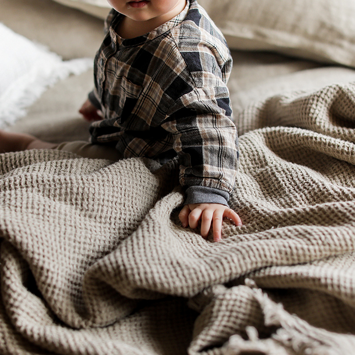 リネンブランケット「TRIANO(トリアノ)」は、名前の通り、100%リネン素材でできたブランケット。赤ちゃんや敏感肌の方でも快適に過ごせるくらい、柔らかくてサラッとした触り心地が魅力です。