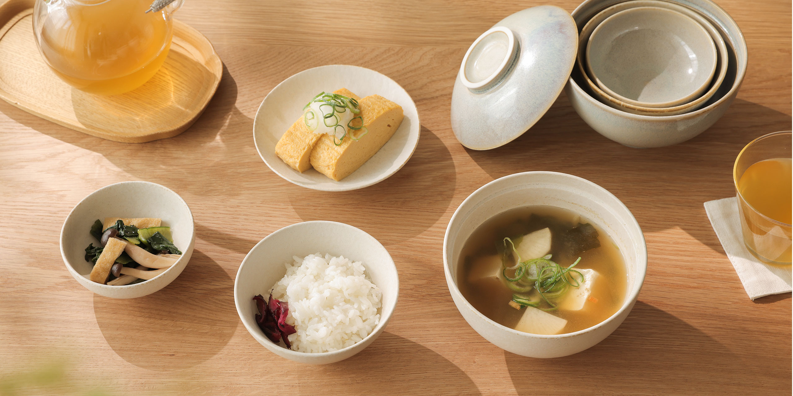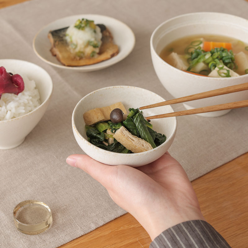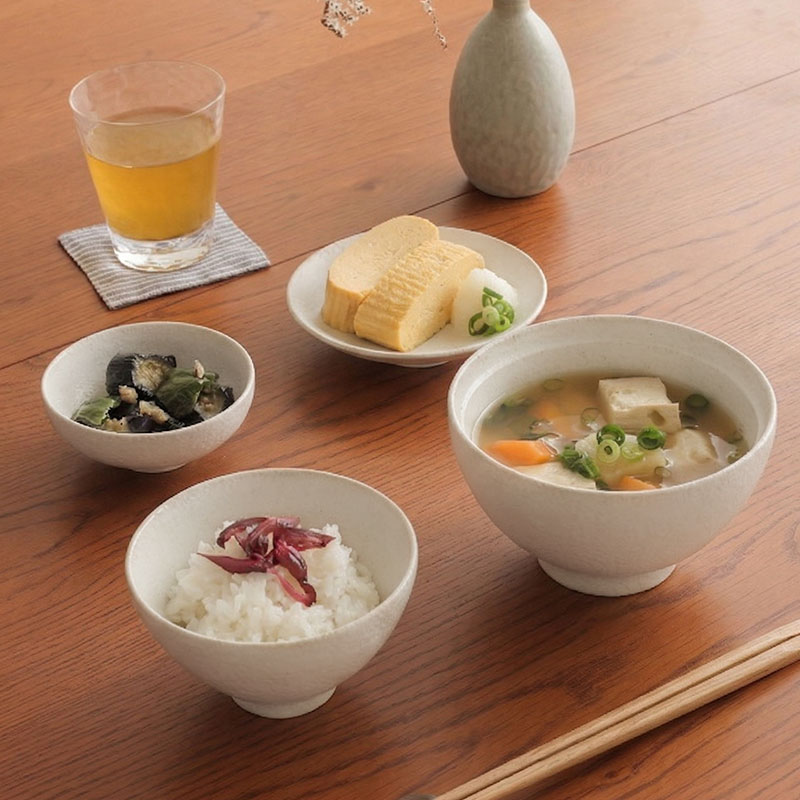 「汁碗、茶碗、小鉢、取り皿」の組み合わせは、毎日の食卓で大活躍する顔ぶれ。