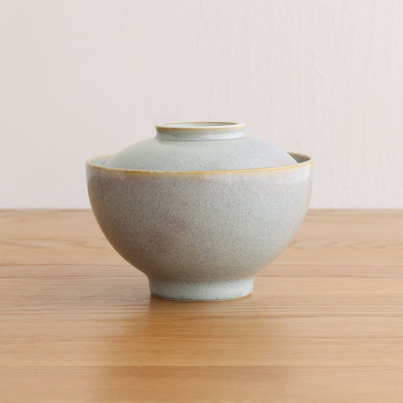 翡翠(ひすい)のような青みがかったグレーに、茶色のゆらぎが味わい深い表情を添えています。