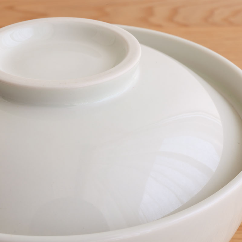 「つや白」は、釉薬のゆらぎを抑えたなめらかな質感が特徴。