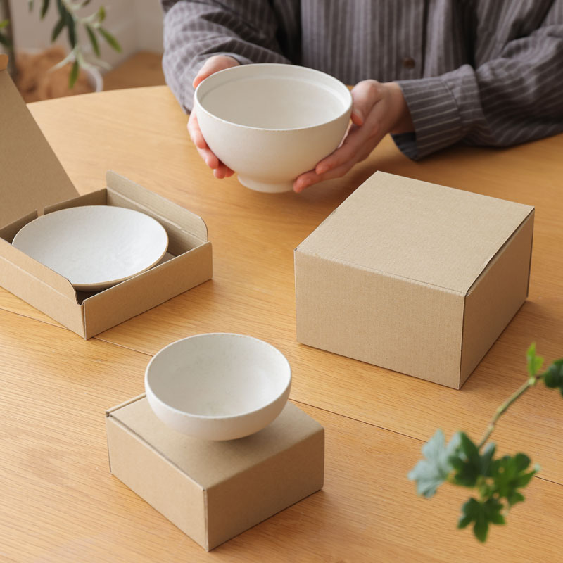 食事に必要なうつわがひと通りそろう「よりそう入れ子碗セット」。シンプルな専用ボックスに入れてお届けします。