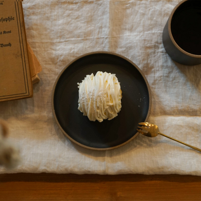 ブラックはマットな黒い釉薬を施しています。ナチュラルと同じく、ザラザラとした手触り。