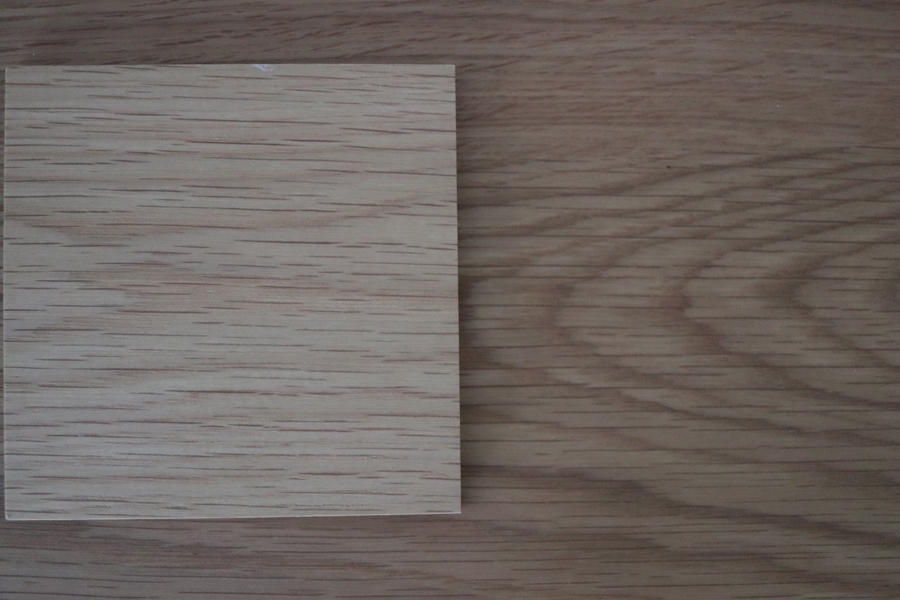 突板仕上げの場合は、表面にシートを張り付けるため、角は直角にしか仕上げられません。