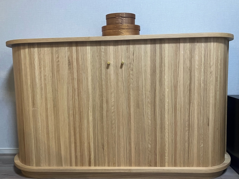 通常の収納家具の様に、手前に開くスペースも不要で、小さなスペースであっても置きやすいのも、タンブールドアの使い心地の良さのひとつと言えるでしょう。
