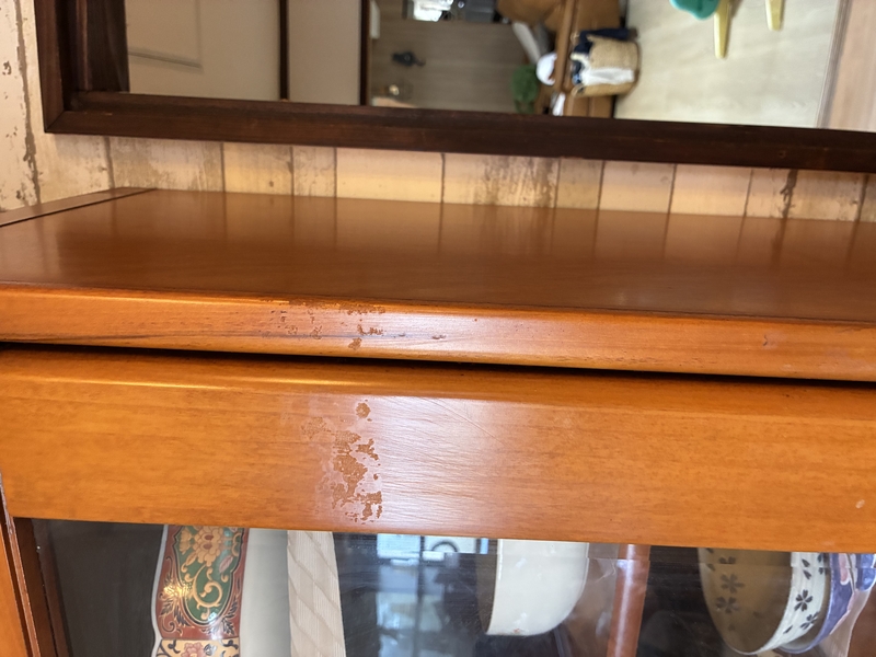 ラッカー塗装やウレタン塗装の家具に「除菌スプレー」をかけた場合、表面の塗膜が徐々に溶けて軟化してしまい、ベタベタになります。