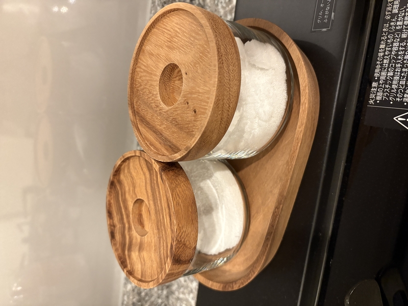ガラスの容器にウッドの蓋がついているだけの、いたってシンプルなデザイン。シンプルがゆえに散らかって見える要素が排除され、入れて並べただけなのに、このように整って見えます。