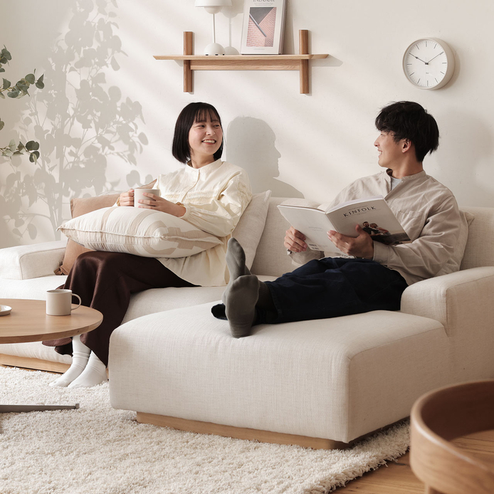 「コンパクトなLDKでもカウチソファーの贅沢なくつろぎを味わってほしい」という想いで、サイズを細かく調整。アームの向きも左右どちらか選べます。