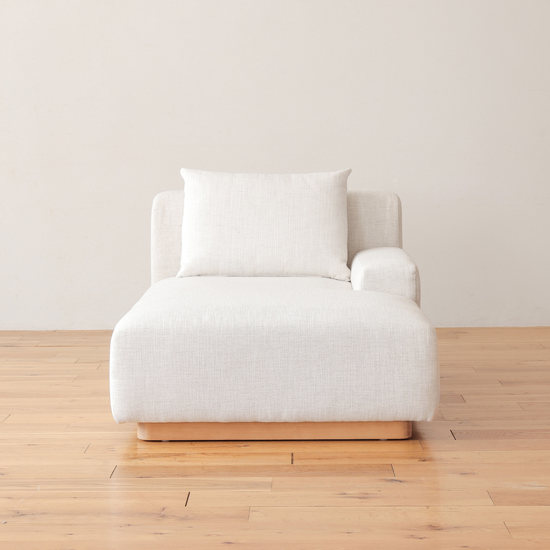 「カウチ」は幅90cm×奥行150cmの縦長タイプ。こちらも左右どちらか選べるアーム付きです。
