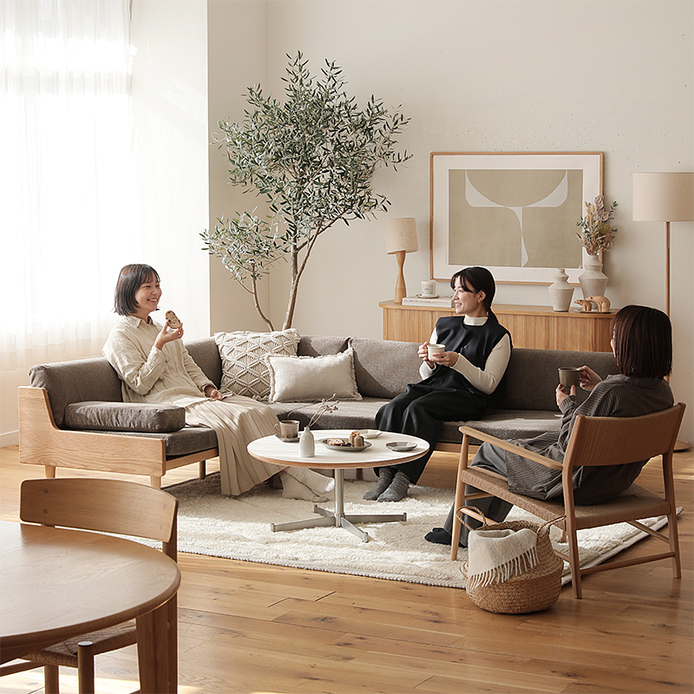 Lysなら、コンパクトなLDKにおいても、サイズ感はしっかりとあるけれど、圧迫感を感じさせないカウチソファー作ることができます。
