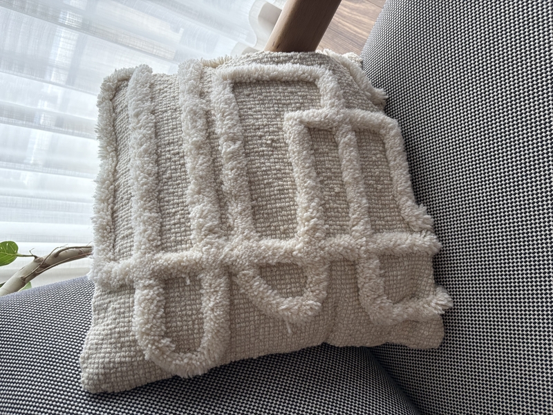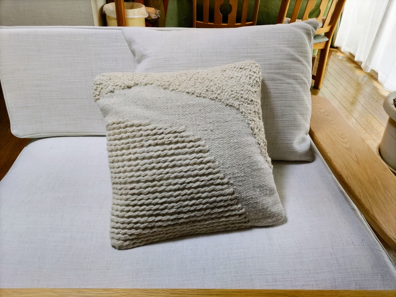 また、Woolithは、シンプルな色合いなので、少し個性のあるクッションとも喧嘩することなく、意外としっくりと馴染みます。