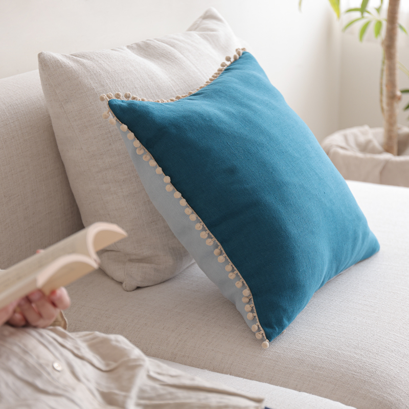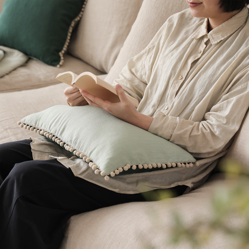そんな方におすすめしたいのが「リネンクッションカバー ナトゥーラボンボン リバーシブルタイプ」。