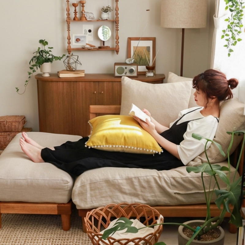 ソファーやベッドに1つ置いておけば、背もたれにしたり、抱えたり、枕にしたりと、リラックスタイムをより快適にしてくれます。