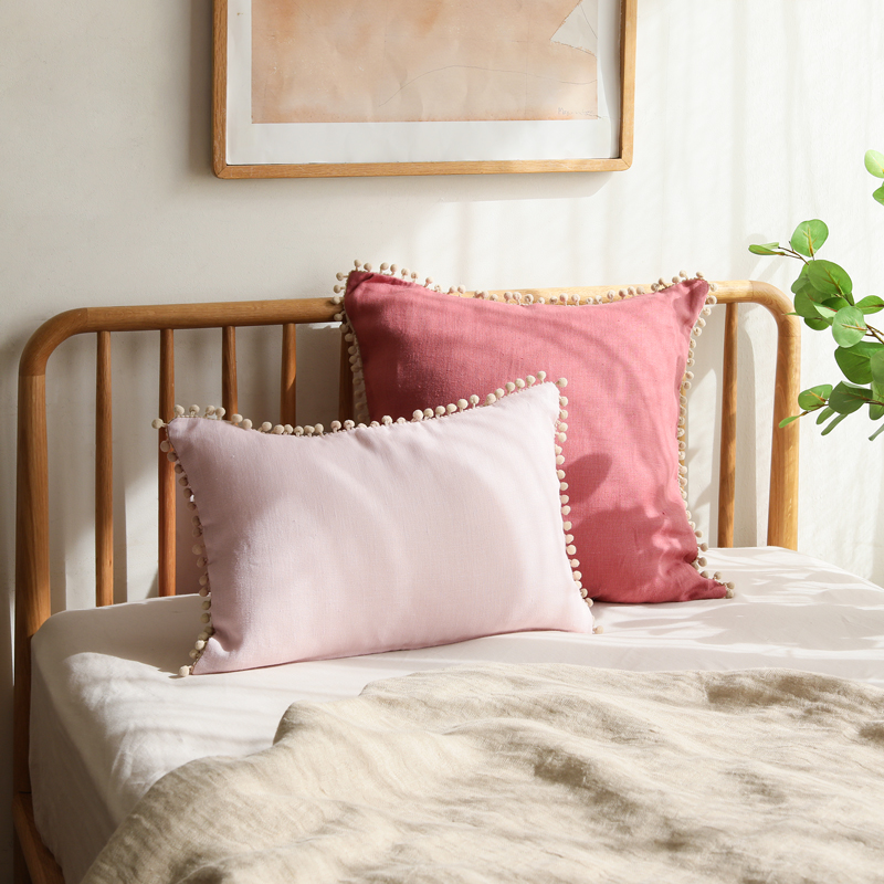 小ぶりな長方形のクッションは、1つ持っておくと、インテリアのアクセントとして活躍してくれます。リラックスタイムには、背あてや肘あて、枕にしたり、使い勝手も抜群です。