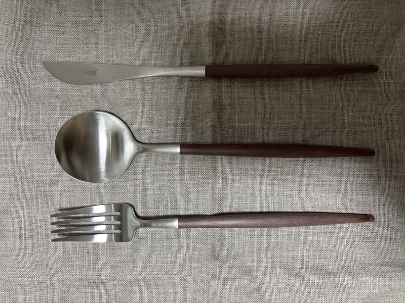 デザインと使い心地を備えたカトラリー「Cutipol GOA(クチポール ゴア)」のブラウンシルバーカラー。職人さんの手で1点ずつ丁寧に作られています。