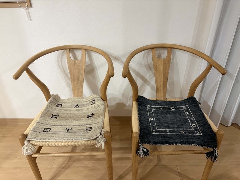 そんなダイニングチェアにシートクッション「Aile(アイレ)ギャッベ」を敷けば、厚さ1cm以上もあるウールのクッションで「もっちり」とした座り心地に。