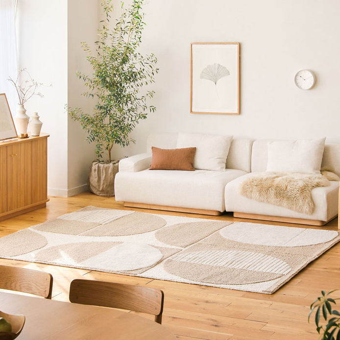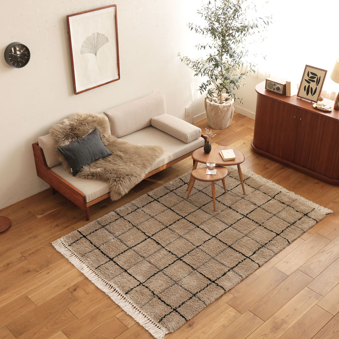 ソファー前に敷いておけば、コーディネートのアクセントになるのはもちろん、足元が冷える冬でも快適にくつろげます。