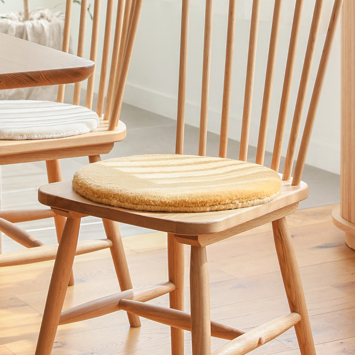 四角形のシートクッションは、座面を広くカバーできますが、丸い座面のチェアなど、デザインによっては不格好になってしまいます。