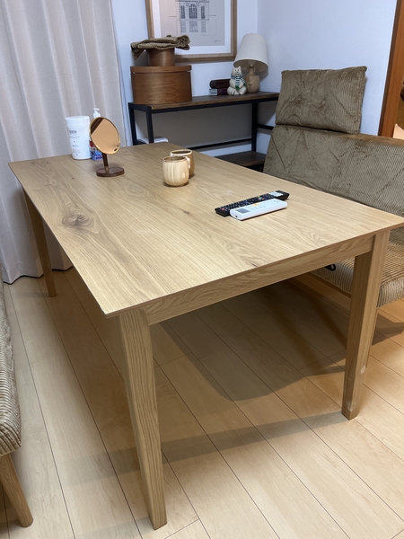 その制約の中でも、美しい天板を実現でき、シンプルながらも王道のダイニングテーブルに仕上げました。