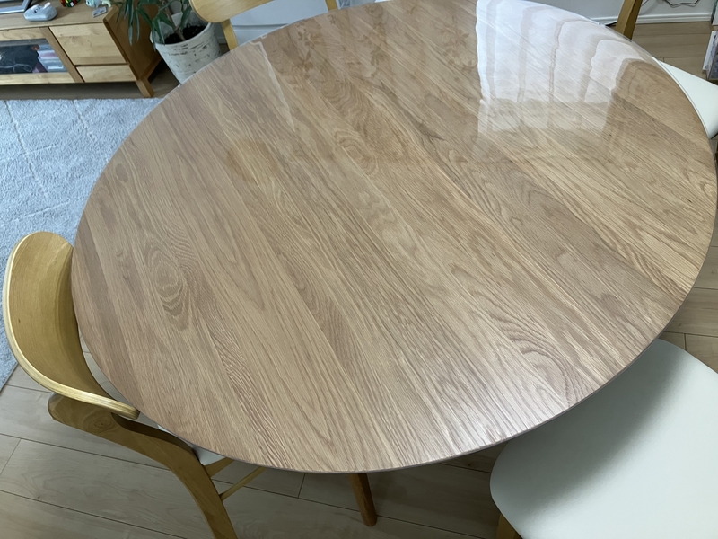 こちらは135×80cmの長方形タイプ。大きすぎず小さすぎず、4人で座るのにぴったりなサイズ感。シンプルでスタンダードなフォルムは、幅広いテイストに合わせやすいです。