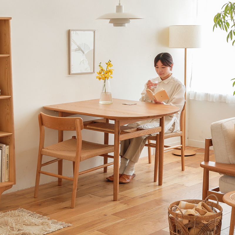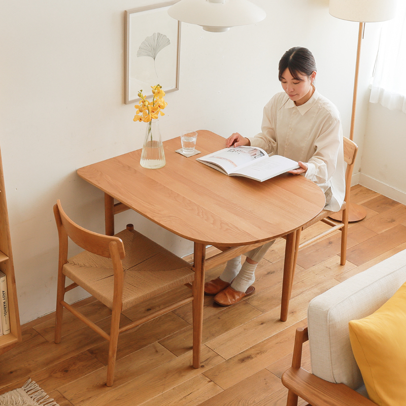 一人暮らしや二人暮らしの方など、「限られたスペースでも、ダイニングテーブルを置きたい」という暮らしに寄り添った大きさ設計です。