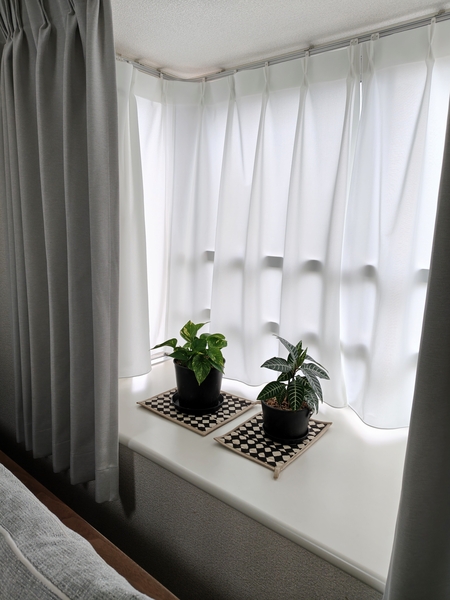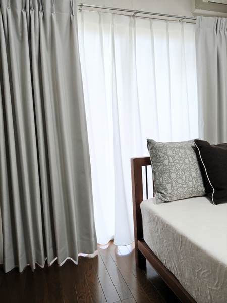 暗くしたいときは遮光カーテン、適度に光を取り入れつつ、視線を遮りたいときはレースカーテンというふうに、2つのカーテンを取り付けておくと使い分けができて便利です。