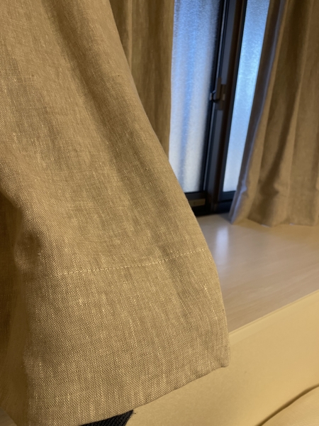 ただし、リネンの調湿効果には一つ注意点があります。それは、湿気を吸うと生地が多少伸びたり縮んだりして、カーテンの丈が少し変わる可能性があること。