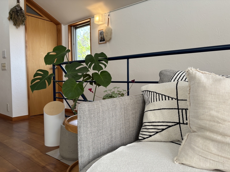 グリーンを1つだけ取り入れるのではなく、植物やファブリックアイテムなどでグリーンを「レピテーション」することで統一感があり、垢抜けたお部屋になります。