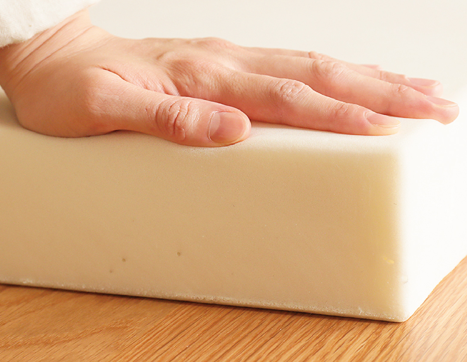 スポンジのような細やかな泡状の構造でできたウレタン素材。内部に含まれる空気量によって硬さが変わる素材です。体をしっかり支えるクッション性と、押し返す反発力をあわせ持ち、安定感のある座り心地を生み出します。