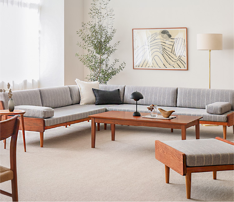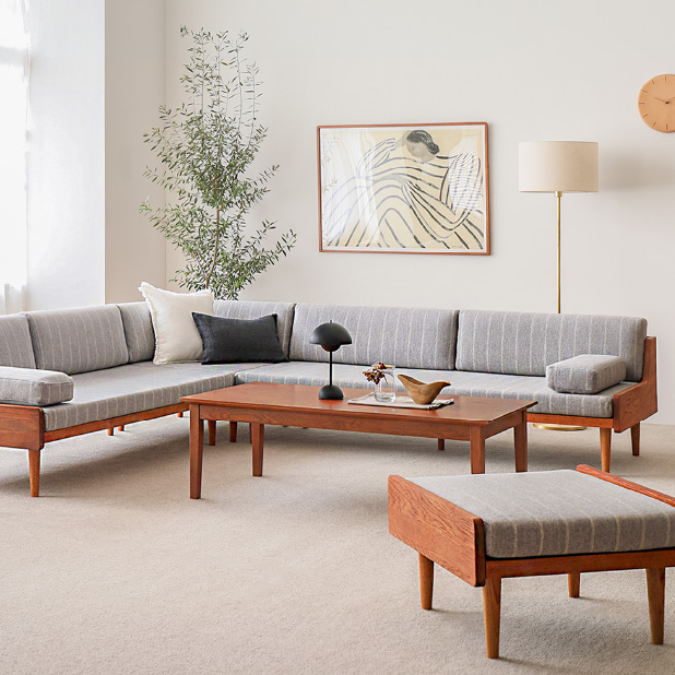 ご友人が多く集まられるお家には、3人掛けにカウチを合わせた大型セットもおすすめです。