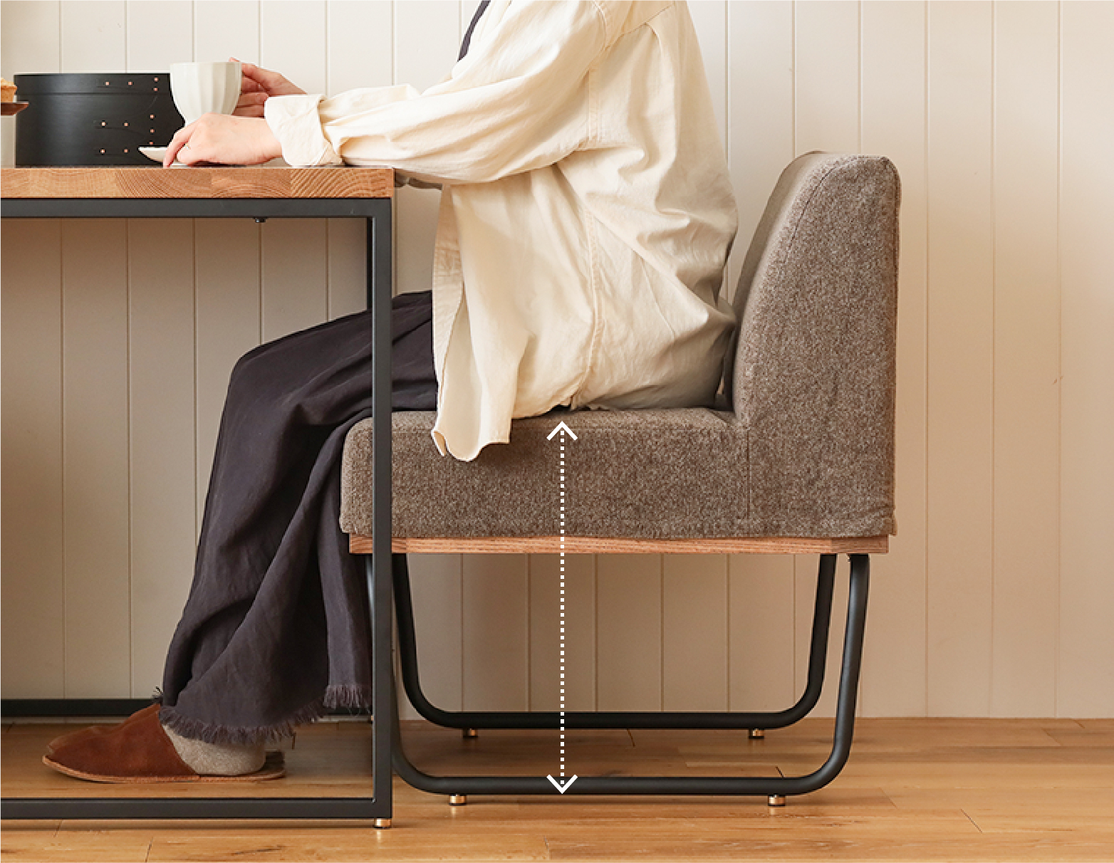 座面が高いソファーは、立ち上がりやすいため、腰や膝への負担が少ないことがポイント。食事やパソコン作業など、姿勢を保ちたいシーンにも向いています。