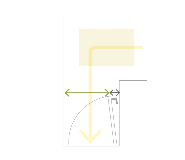 ※外開きの扉の場合、ドアノブの分だけ入口が狭くなります。