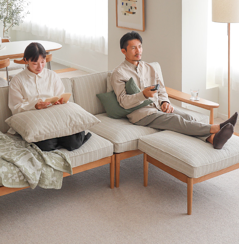 ソファーは、アームの有無や形によって、過ごし方が大きく変わります。