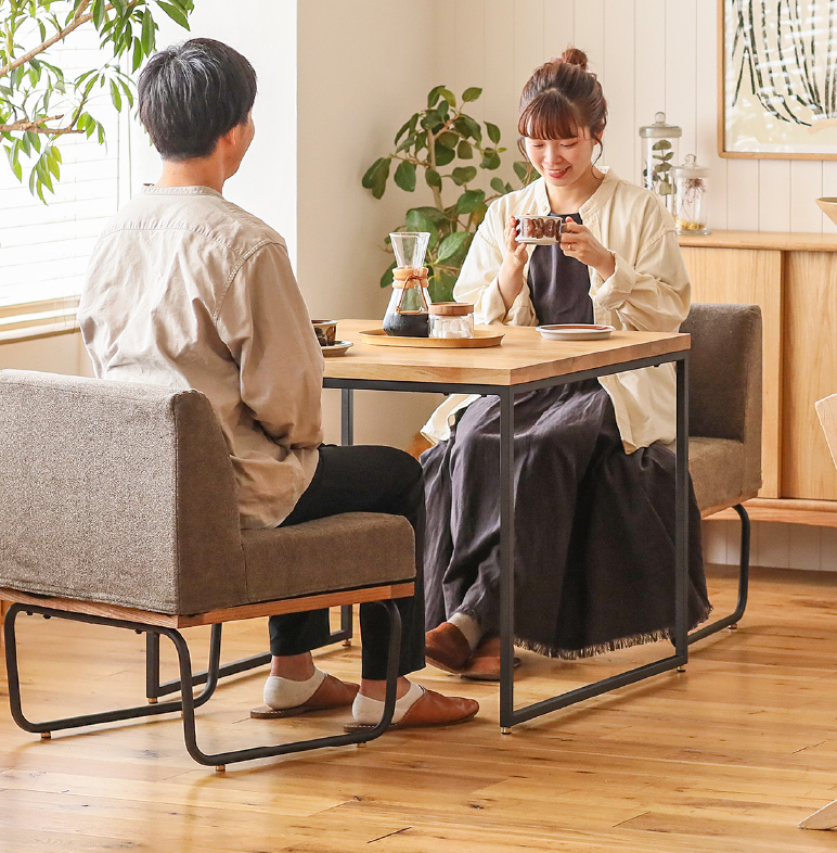 ソファーダイニングタイプなら、お食事も、その後のリラックスタイムも叶います。ダイニングとリビングを1つの場所でまとめられることができるので、コンパクトなお部屋にもおすすめ。